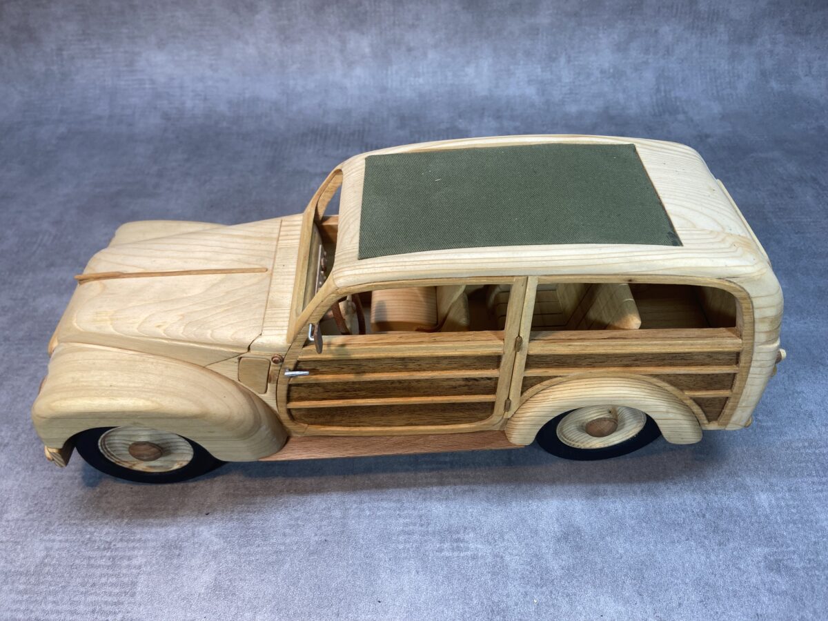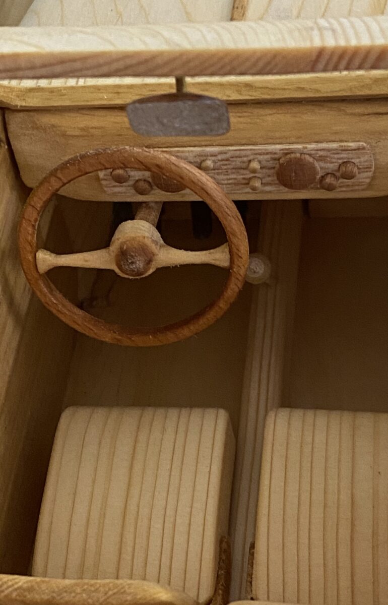 Per la costruzione di questo modello, non trovando un progetto, ho scaricato dalla rete il disegno del libretto istruzione con le misure standard e poi ho recuperato da internet delle foto dell’interno e dell’esterno dell’auto originale