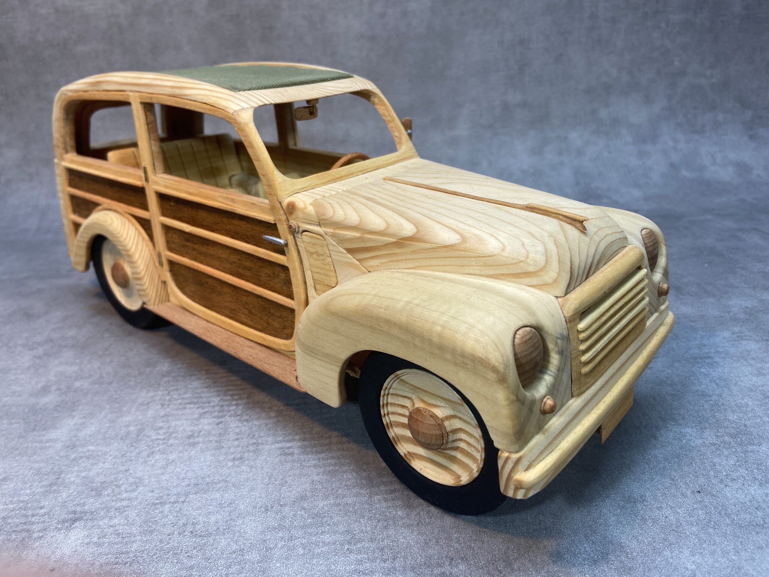 Per la costruzione di questo modello, non trovando un progetto, ho scaricato dalla rete il disegno del libretto istruzione con le misure standard e poi ho recuperato da internet delle foto dell’interno e dell’esterno dell’auto originale